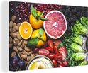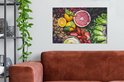 Divers fruits étalés sur une toile de table 2cm 60x40 cm - Tirage photo sur toile (Décoration murale salon / chambre)