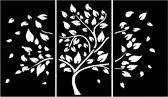 Djemzy - décoration de fenêtre salon/chambre - moustiquaire - volet de fenêtre - décoration de rebord de fenêtre - bois - noir - plantes - panneau de fenêtre - arbre de vie avec feuilles - 3 pièces - grand - MDF 6 mm