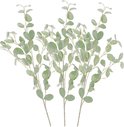 3x fleur artificielle branche d'eucalyptus Real Touch 90 cm vert clair. Cette branche d'eucalyptus artificielle est fournie sous forme de fleur à tige libre et peut être combinée avec d'autres fleurs artificielles pour former un magnifique bouquet, ou est magnifique comme branche séparée dans un vase. La branche artificielle a plusieurs branches latérales et est douce et soyeuse. Belle qualité et impossible à distinguer de la réalité. Taille: 90 cm. Matière: plastique / soie.