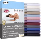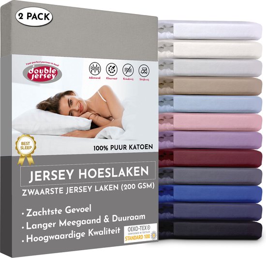 Double Jersey - Duo pack Hoeslaken 100% Katoen doux Jersey - non repassage et sans plis avec une hauteur d'angle jusqu'à 30 cm -2 pièces 90x200x30 Simple Argent Grijs