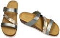 Dr BRINKMANN article/modèle BETTINA 2 vert clair sont des pantoufles pour femmes en gris-vert métallisé avec une combinaison beige avec une tige en gris-vert métallisé brillant associée à des brides à imprimé camouflage beige/doré sur une semelle compensée en liège ou un talon compensé avec une hauteur de talon réaliste de 2½ cm et une semelle intérieure souple et anatomique recouverte de cuir. Ces pantoufles confortables reposent sur une semelle en liège naturel extrêmement douce et résistante sur une semelle extérieure en caoutchouc blanc crème et disposent d'une semelle intérieure souple préformée anatomiquement/orthopédiquement. La construction de la semelle Dr Brinkmann se compose de 4 couches : une semelle extérieure en caoutchouc, une épaisse couche de liège par-dessus, une fine couche de mousse PU par-dessus et enfin recouverte d'une couche supérieure en cuir. Cela vous fera marcher sur des nuages avec le Dr Brinkmann !