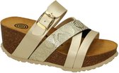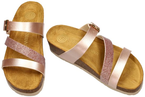 Dr BRINKMANN article/modèle BETTINA 1 rosegold sont des chaussures pour femmes, slip-ons, pantoufles ou mules en or rose métallisé avec une tige en or rose métallisé associée à des brides en strass roses scintillantes sur une semelle compensée en liège ou un talon compensé avec une hauteur de talon réaliste de 2½ cm et une semelle intérieure souple et anatomique recouverte de cuir. Ces pantoufles confortables reposent sur une semelle en liège naturel extrêmement douce et résistante sur une semelle extérieure en caoutchouc blanc crème et sont équipées d'une semelle intérieure anatomique/orthopédique préformée et souple amortissante. La construction de la semelle Dr Brinkmann se compose de 4 couches : une semelle extérieure en caoutchouc, une épaisse couche de liège par-dessus, une fine couche de mousse PU par-dessus et enfin recouverte d'une couche supérieure en cuir. Cela vous donne l’impression de marcher sur des nuages avec le Dr Brinkmann !