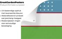 Les affiches de jardin, également appelées toile de jardin, sont des affiches spécialement adaptées pour être suspendues à l'extérieur. Cette nappe de jardin peut donc prendre une raclée. La voile Bisonyl a été utilisée pour cette affiche extérieure. Cette voile est une bâche enduite avec une belle finition. L'affiche de jardin est résistante aux UV, elle ne se décolore donc pas au soleil. Un anneau a été placé dans chaque coin du tissu, afin que vous puissiez facilement accrocher le tissu. Le tissu peut résister aux différentes conditions météorologiques et durera au moins 3 ans.