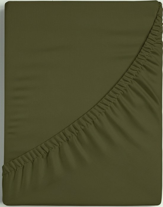 Dreamers Den - Jersey Premium élasthanne - Katoen biologique - Hoeslaken - Vert olive - 200 x 220 cm - Hauteur des coins : 35 cm