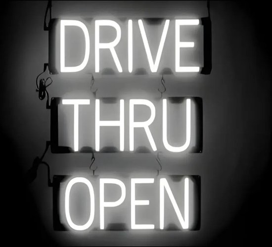 DRIVE THRU OPEN - Néon publicitaire Néon LED enseigne lumineuse | SortBrite | 46 x 60 cm | 6 modes de gradation - 8 animations lumineuses | Éclairage au néon pour panneaux publicitaires