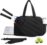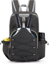 Le sac est équipé d'un compartiment raquette isolé, d'un compartiment raquette normal et d'un compartiment principal spacieux dans lequel vous pouvez ranger toutes vos autres affaires. Les petites poches latérales sont parfaites pour ranger les accessoires. Grâce aux deux bretelles réglables, vous pouvez facilement porter le sac sur votre dos pour un confort de portage optimal.