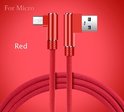 DrPhone D9 Câble Micro USB Double Angle Droit 90° Nylon Tressé 2.4A - 2 Mètres - Synchronisation des Données et Charge Rapide - Rouge