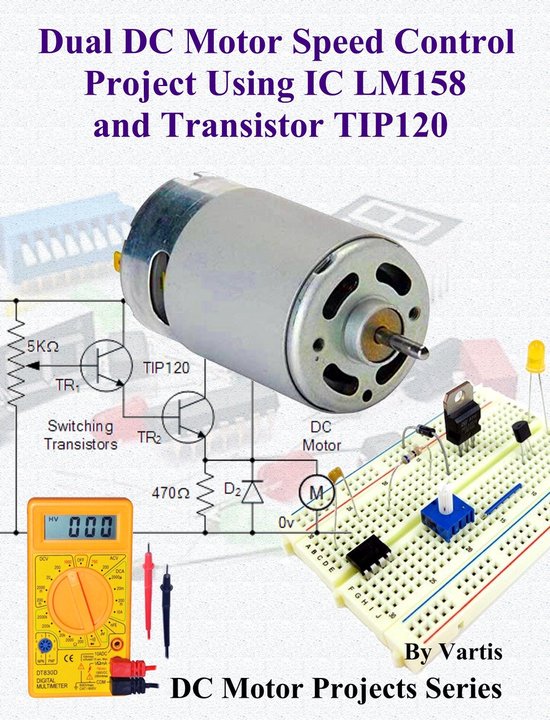 This eBook guides you to build the 'Dual DC Motor Speed Control Project Using IC LM158 and Transistor TIP120'.