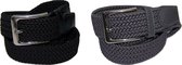 Duopack Zwart Bleu Foncé XXL - Riem Élastique Comfort - taille 130 - Tressé - 100% Élastique - Boucle Sans Nickel