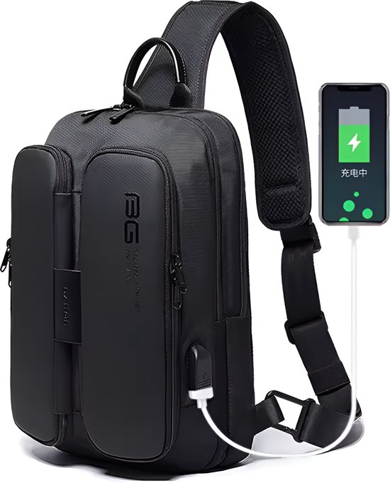 E-Shop4u® - Sac à bandoulière décontracté pour homme - Tissu Oxford - Port de chargement USB - Poche antivol - Zwart