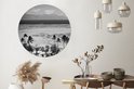 Eau bleue claire avec des montagnes en arrière-plan en noir et blanc Cercle mural aluminium ⌀ 140 cm