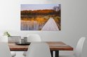 La photo est imprimée sur une toile robuste de 260 grammes de 0,41 mm d'épaisseur. Le lin est tendu étroitement sur un cadre en bois de deux centimètres d'épaisseur. Ce cadre en bois est en bois de pin certifié PEFC de qualité. Un système de suspension peut être commandé en option avec le produit pour fixer facilement l'impression au mur.