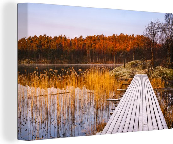 Échafaudage scandinave en automne 90x60 cm - Tirage photo sur toile (Décoration murale salon / chambre)