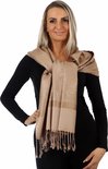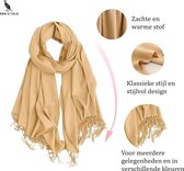 Ce Pashmina beige doux appartient à chaque garde-robe. Il est fait du tissu le plus fin et sans plis grâce aux fils de soie. Avec une fine finition effilochée, cette écharpe peut également être portée en paréo, châle ou poncho drapé sur la plage ou dans le bateau. La brillance donne un look décontracté