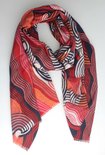 Echarpe Kara- Accessoires Junkie Amsterdam- Echarpe femme- Echarpe longue- Echarpe pour manteau- Viscose- Châle- Cosy chic- Cadeau- Imprimé graphique- Etole- Fuchsia crème noir