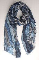 Écharpe Stacey - Accessoires Junkie Amsterdam- Écharpe femme - Longue - Katoen- Châle - Cadeau - Imprimé graphique - Blauw