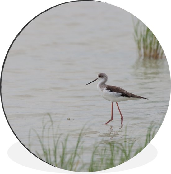 Echasse à ailes noires patauge dans le cercle mural en eau peu profonde aluminium ⌀ 30 cm - impression photo sur cercle mural / cercle vivant / cercle de jardin (décoration murale)