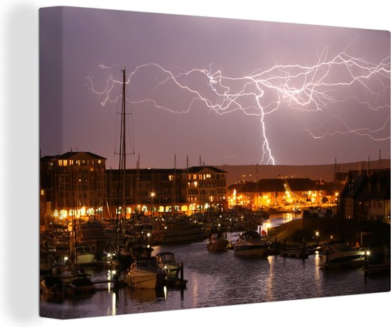 Eclair sur une toile de port 140x90 cm - Tirage photo sur toile (Décoration murale salon / chambre)