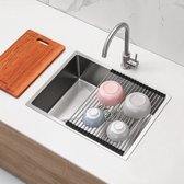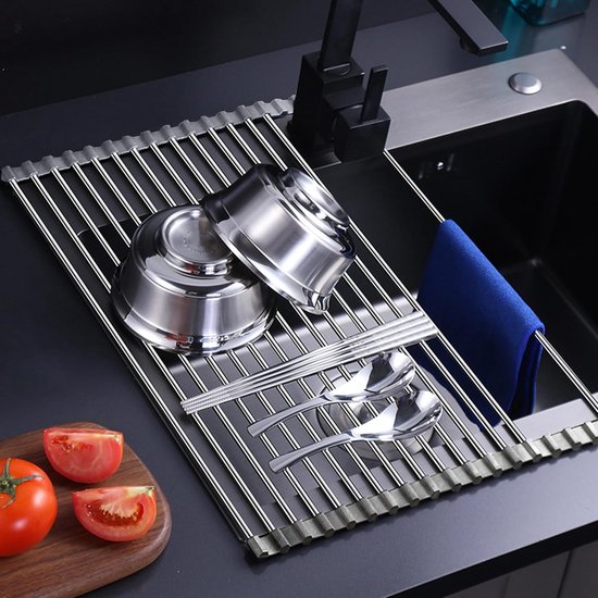 Égouttoir à vaisselle, égouttoir pliable et amovible en acier inoxydable sur l'évier, tapis d'égouttage, étagère de cuisine, grille d'égouttage, évier pour tasses, fruits, légumes, vaisselle, 43 x 35 cm