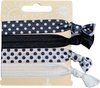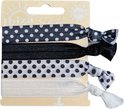 Un ensemble d'élastiques Ibiza avec un élastique basique noir et blanc et deux différents élastiques à pois noirs / blancs.