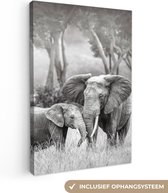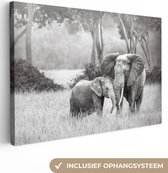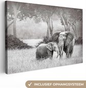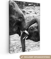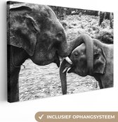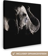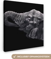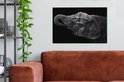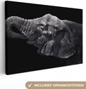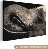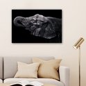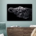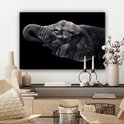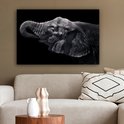 Elephant avec sa trompe dans sa bouche en toile noir et blanc 2cm 90x60 cm - impression photo sur toile peinture (Décoration murale salon / chambre à coucher) / Animaux sauvages Peintures Toile