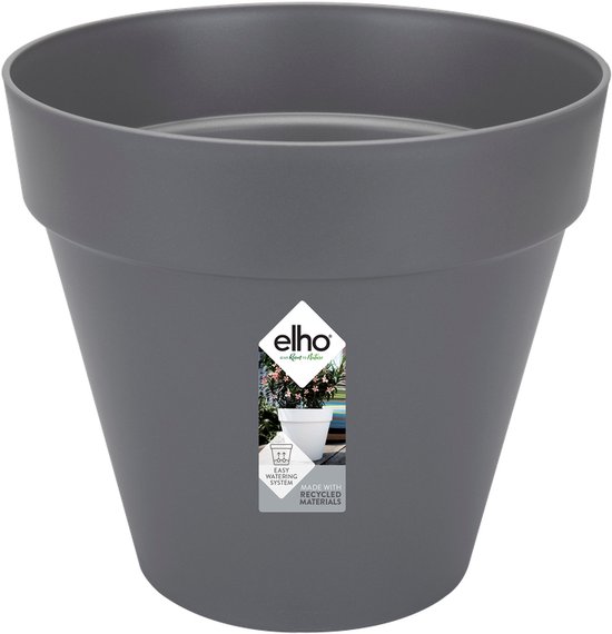Elho Loft Urban Rond 20 - Pot De Fleurs pour Extérieur - Plastique 100% recyclé - Ø 19.3 x H 17.5 cm - Anthracite