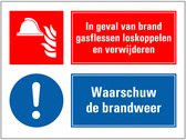 Vous pouvez utiliser le débranchement et le retrait des bouteilles de gaz en cas de signe d'incendie pour indiquer que vous devez débrancher et retirer les bouteilles de gaz en cas d'incendie. De plus, le panneau indique que vous devez prévenir les pompiers.