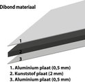 Avec ce panneau de sécurité, vous pouvez choisir entre le plastique et le dibond. Nous vendons la majorité de nos enseignes en matière plastique polystyrène. C'est un matériau moins cher que le matériau dibond, mais adapté à la plupart des situations. Le Dibond est un matériau de haute qualité qui est également très résistant aux intempéries. De plus, la durée de vie du dibond est plus longue. Ce matériau se compose d'un noyau en plastique avec des couches extérieures en aluminium. De plus, la version dibond de cette planche est livrée avec 4 trous percés dans les angles.
