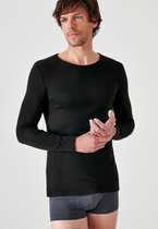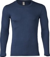 Chemise pour homme à manches longues, composée d'un mélange de soie et de laine mérinos d' Engel Natur. 30% soie, 70% laine mérinos Bio , côtes fines, sans couture. Fabriqué en Allemagne, certifié GOTS.