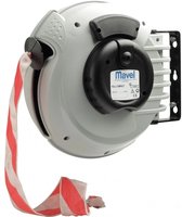 La bobine a une protection intégrée contre les surcharges thermiques. Le modèle est très compact et équipé d'un câble en caoutchouc souple. À l'extrémité se trouve une douille moulée. Les bobines Mavel sont fabriquées en plastique résistant aux chocs et équipées de tuyaux flexibles pour un déroulement et un enroulement sans effort. Un enrouleur Mavel est réglé en standard sur un mécanisme à cliquet, mais peut être réglé de sorte que le tuyau reste toujours automatiquement tendu.