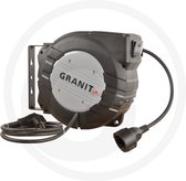 Enrouleur plastique automatique compact MAVEL avec câble électrique caoutchouc 3 conducteurs 3 x 2,5 mm² de15 mètres est constitué d'un boîtier en plastique et équipé d'un rouleau de guidage pour un enroulement sans problème du câble et d'une protection thermique intégrée. Avec support pivotant pour montage mural. Convient jusqu'à3500 Watt.