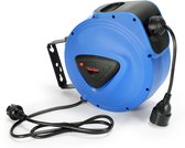 MASKO® Enrouleur de câble 20 mètres automatique pour l'extérieur avec 3 prises Montage mural Câble de connexion de 1,5 m Gants inclus - Blauw