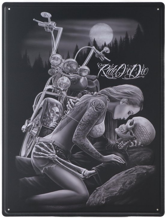 Enseigne murale rétro - Ride or die moto signe - Skul art - Enseigne Vintage - Décoration murale - Enseigne en métal - Enseigne Publicité en émail - Panneaux muraux - Décoration Mancave - Garage - Bar - Café - Style Restaurant