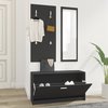 Cet ensemble d'armoires à chaussures en bois 3 en 1 se compose d'une élégante armoire à chaussures, d'un miroir avec cadre en bois et d'un porte-manteau en bois. Avec cet ensemble, vous résolvez une grande quantité de problèmes de stockage. Le meuble à chaussures se compose d'un grand compartiment de rangement, avec une section centrale pour garder les choses organisées. Le design est simple, mais élégant et plus important encore, les chaussures ne se balanceront plus sur votre sol. Le porte-manteau a quatre crochets métalliques robustes et le miroir est assez grand pour prendre soin de votre apparence. Le meuble à chaussures est en bois de haute qualité et facile à assembler.