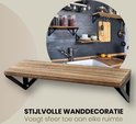 Lors de la conception des étagères murales, une grande attention a été accordée à l'association de la chaleur et du minimalisme d'une manière cool et atmosphérique ! Les planches de bois donnent un aspect chaleureux, tandis que les cadres en métal donnent un aspect industriel. C'est un intérieur de caractère !
