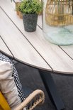 Le plateau de la table Edison est en bois de Vironwood. Vironwood est un matériau synthétique résistant dont l’apparence est impossible à distinguer du vrai bois.