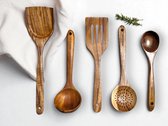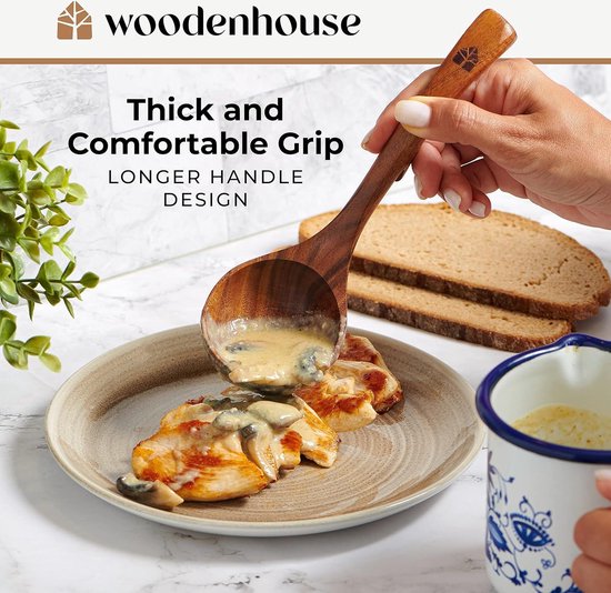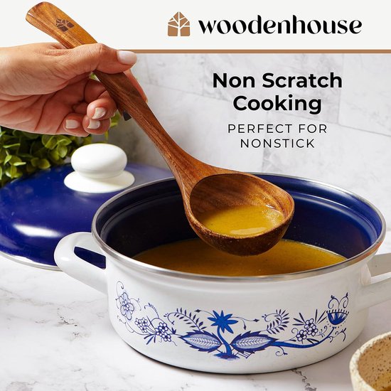 Ensemble de louches - cuillère de service de cuisine en teck - casserole et bol - antiadhésif - cuisson et brassage