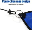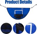 Ce support de basket-ball est facile à installer. Attachez les extrémités du tissu bleu avec une ficelle de connexion, collez le tissu bleu sur le support et gonflez le ballon de basket avec la pompe fournie. De cette façon, vous pouvez commencer à jouer rapidement.