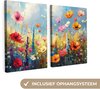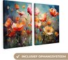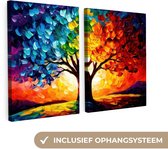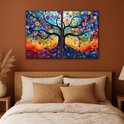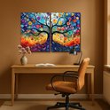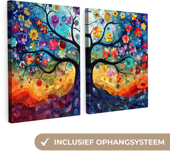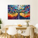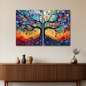 Ensemble de peintures sur toile 120x80 cm - Décoration murale diptyque - Coloré - Arbre de vie - Fleurs - Abstrait - Décoration murale salon - Décoration chambre - Accessoires chambre - Peintures sur toile