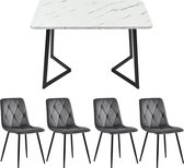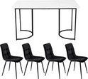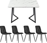 Ensemble de salle à manger (5 pièces) - ensemble table à manger avec 4 chaises - ensemble de table de cuisine moderne - table de cuisine 140×80cm avec pieds en métal noir - plateau de table en MDF blanc - chaises de salle à manger en velours noir