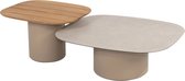 Découvrez l'ensemble Emma de 2 tables basses rondes avec plateau en céramique/ teak imprimé et cadre en aluminium latte de Taste 4SO. Ces tables basses ont un diamètre de 80 cm. et 65 cm. et bénéficient d'une garantie de 5 ans.
