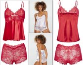 Pyjama luxueux en viscose douce. Top à manches courtes et short en dentelle.