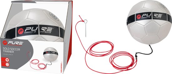 Entraîneur de football, ballon taille 5. Avec cet entraîneur de football de Pure2Improve, vous pouvez améliorer efficacement votre contrôle du ballon. En améliorant les passes, les dribbles et le jeu de jambes général, vous optimisez vos touches de balle. Grâce au cordon élastique qui peut s'étendre jusqu'à 12,5 m, vous ne perdrez pas de temps à courir après le ballon et vous pourrez passer plus de temps à améliorer vos performances. Il y a un piquet chez l'entraîneur de foot, vous pouvez le planter dans le sol à l'extérieur pour que le ballon revienne toujours vers vous.