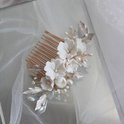 La Lola est une broche de mariée unique et sans effort. Fait de fleurs et de feuilles délicates. Inspiré du thème classique du mariage blanc, ce postiche est une pièce parfaite pour la mariée moderne et traditionnelle.