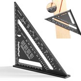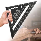 Équerre de charpentier 180 mm - Règle en aluminium - Équerre de charpentier triangulaire 45/90 degrés - Outil de mesure de haute précision - Pour charpentier, couvreur, ingénieur - Zwart