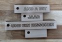 Fabriqué en épicéa massif, disponible avec n'importe quel nombre. Diverse étiquettes/planches sont incluses avec du texte, mais aussi un blanc. . Après la commande, vous pouvez le transmettre à info@aelaser.nl. Veuillez noter qu'il nous faut 3 à 5 jours ouvrables pour l'expédition.