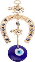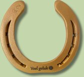 Hoefijzergeschenk.nl - Fer à cheval doré 'Bonne chance' - Porte-bonheur - Or - Fer- Avec trèfle à quatre feuilles - 15 x 15 cm