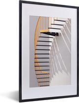 Complétez votre intérieur avec cette photo encadrée de PosterMonkey ! Cette vue montre un escalier jaune et noir contre un poteau blanc.