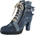 Escarpins Rock Rebel by EMP Femme - Ivy - textile bleu uni - Basics, Rock wear - talon haut de 9 centimètres et tige haute de 12 centimètres, deux fermetures éclair et lacets latéraux, choix de lacets noirs ou beiges - Sous Rock Rebel by EMP nous concevons des vêtements et accessoires rock avec des patchs, des lacets, des imprimés all-over, des broderies et des épingles.