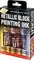 Essdee Block Printing Ink Metallic set - Peinture Lino - 3 couleurs - or, argent, bronze - 100ml